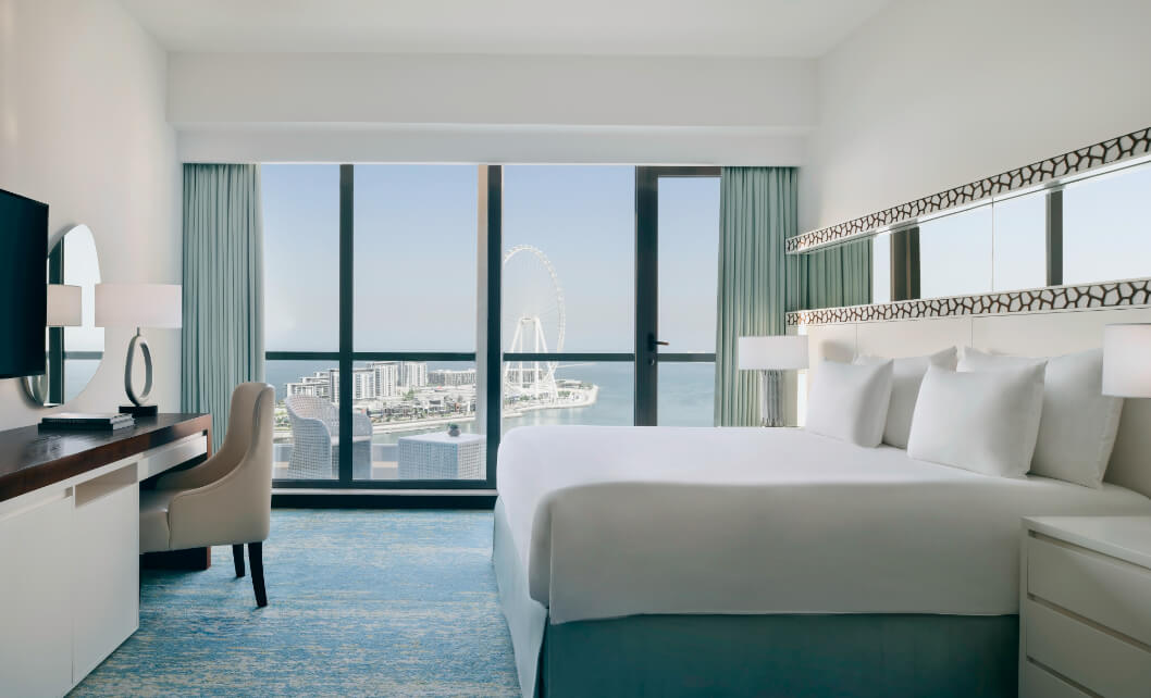 JA Ocean View Hotel sits in the heart of Dubai’s vibrant Jumeirah Beach Residences, where city energy meets ocean serenity. Every one of our 346 rooms and suites offers uninterrupted sea views, while the infinity pool frames Ain Dubai in the distance. Spend your days discovering enticing restaurants and bars, or step directly onto The Walk for world-class shopping, seaside strolls, and buzzing nightlife. With Dubai Marina moments away, this five-star hotel is a stylish base for guests who love the rhythm of the city and the calm of the coast.