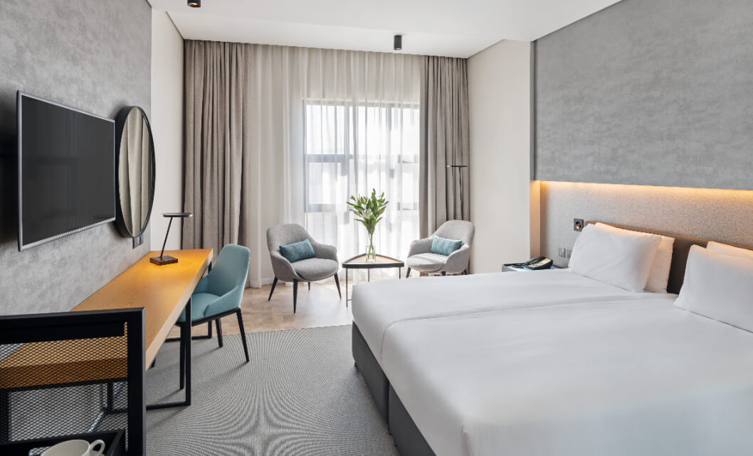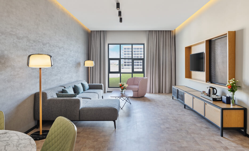 Located in the Al Furjan community, JA The Manor Hotel offers fully furnished hotel apartments ideal for business travellers and UAE residents seeking comfort, convenience, and flexibility. Close to JAFZA, EXPO City Dubai, and Al Maktoum International Airport, it’s perfectly placed for corporate stays. Contemporary interiors create an inspiring co-working environment for freelancers and digital nomads, complemented by freshly brewed coffee in the lobby café. With a nearby metro station and quick access to major malls like Ibn Battuta and Festival Plaza, everything you need is within easy reach.